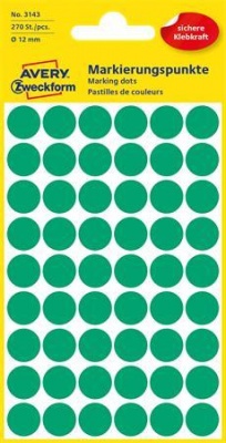 Etikety, okrúhle, priemer: 12 mm, AVERY ZWECKFORM, zelené, 270 etikiet/bal
