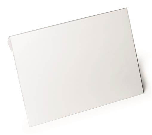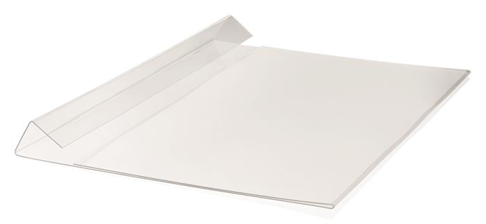 -priehľadné puzdro na dokumenty z tvrdenej PET fólie s ohybom, vhodné na zavesenie nad kartónové škatule, boxy alebo iné skladovacie nádoby